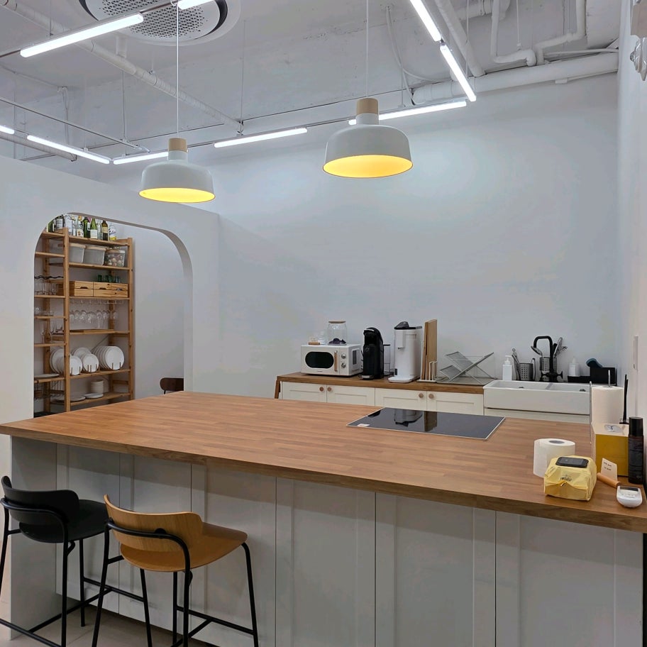 전자레인지, 커피머신 등 기본 비품이 다 준비되어 있어서 따뜻하게 데워 먹거나 커피 내려 마시기도 편하답니다 ☕ 일회용품도 비치되어 있으니 접시나 컵 챙겨올 필요 없어요. 정말 편하게 음식만 준비해 오시면 됩니다!
